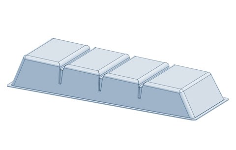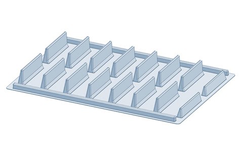 Popco offers design and mold engineering for trays with custom-height fins and varied numbers of fins. Following design and production of your mold, we then run the tray. For a custom run, the minimum number of trays is 500. Runs of 1000 or more will produce the best per-tray price.
